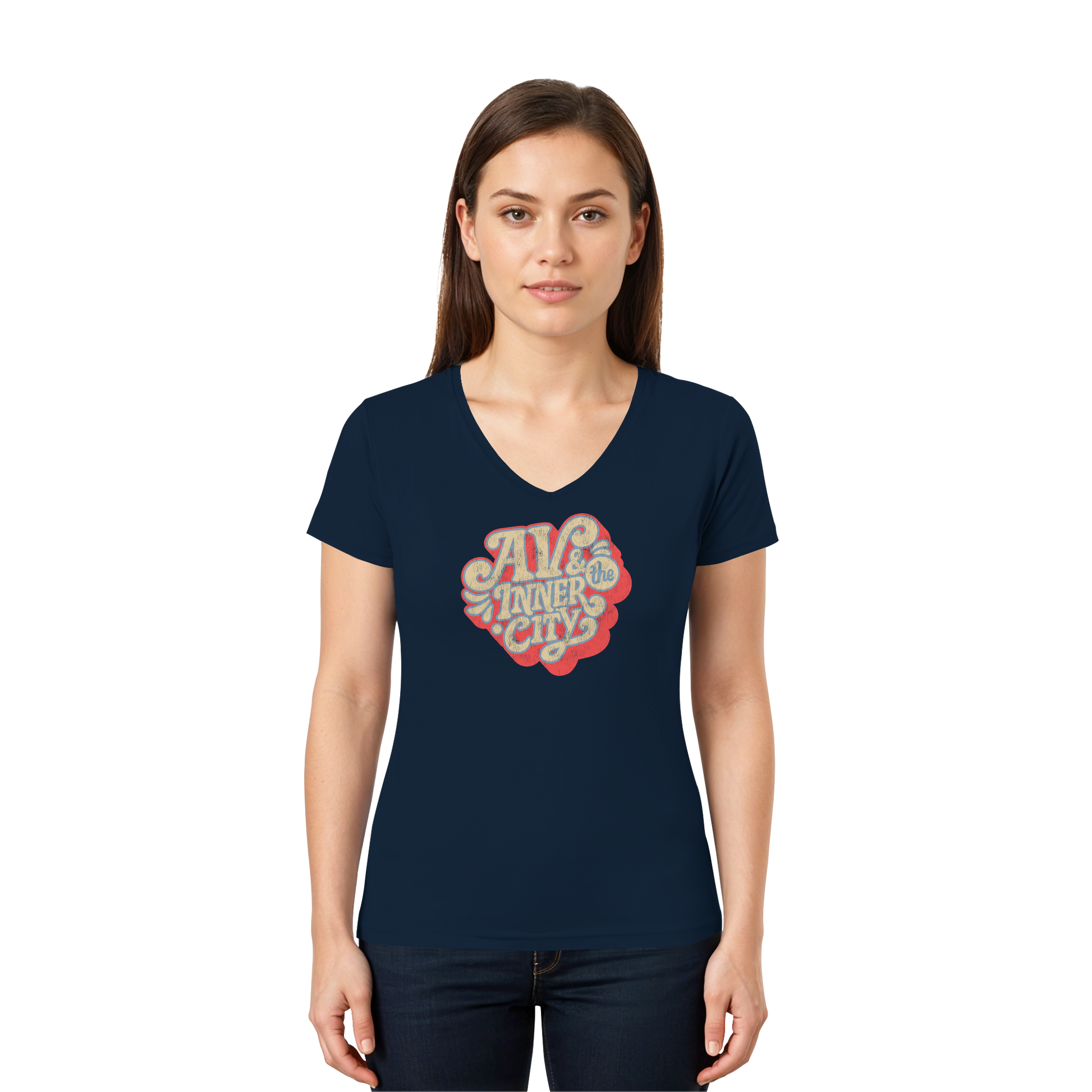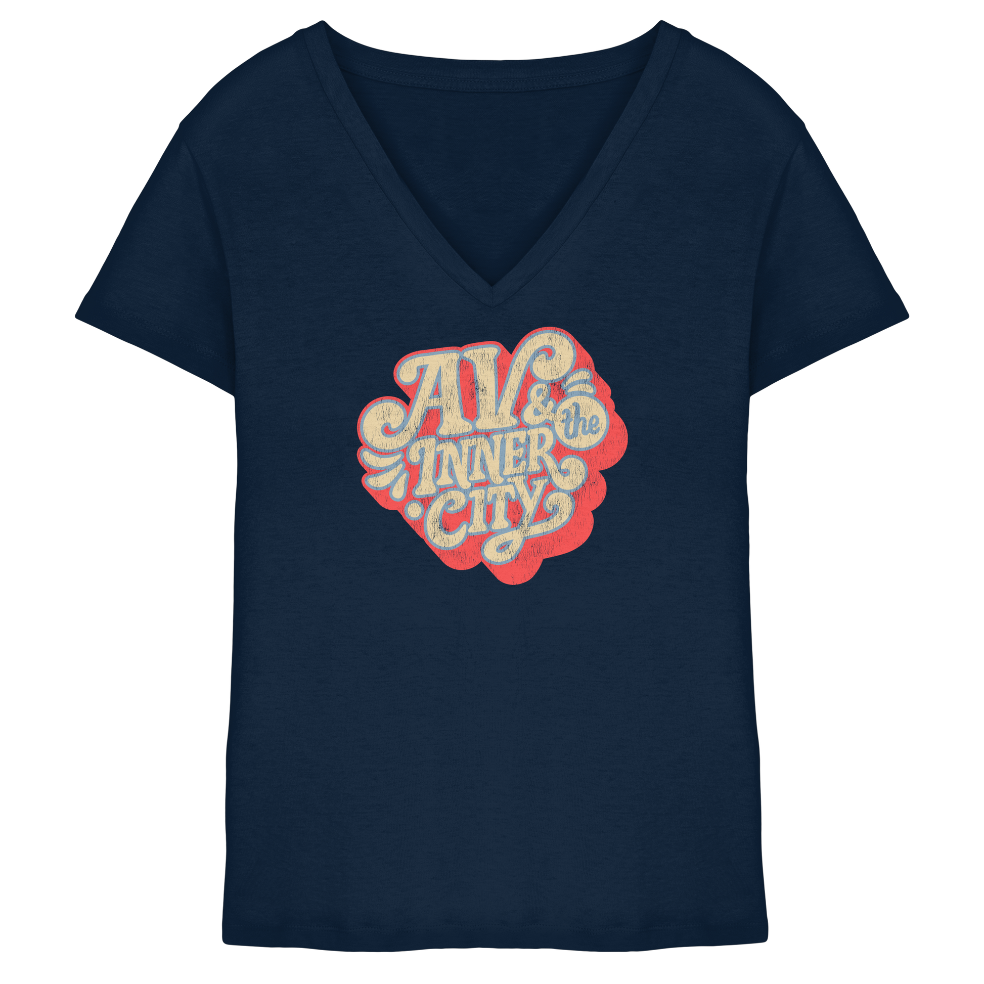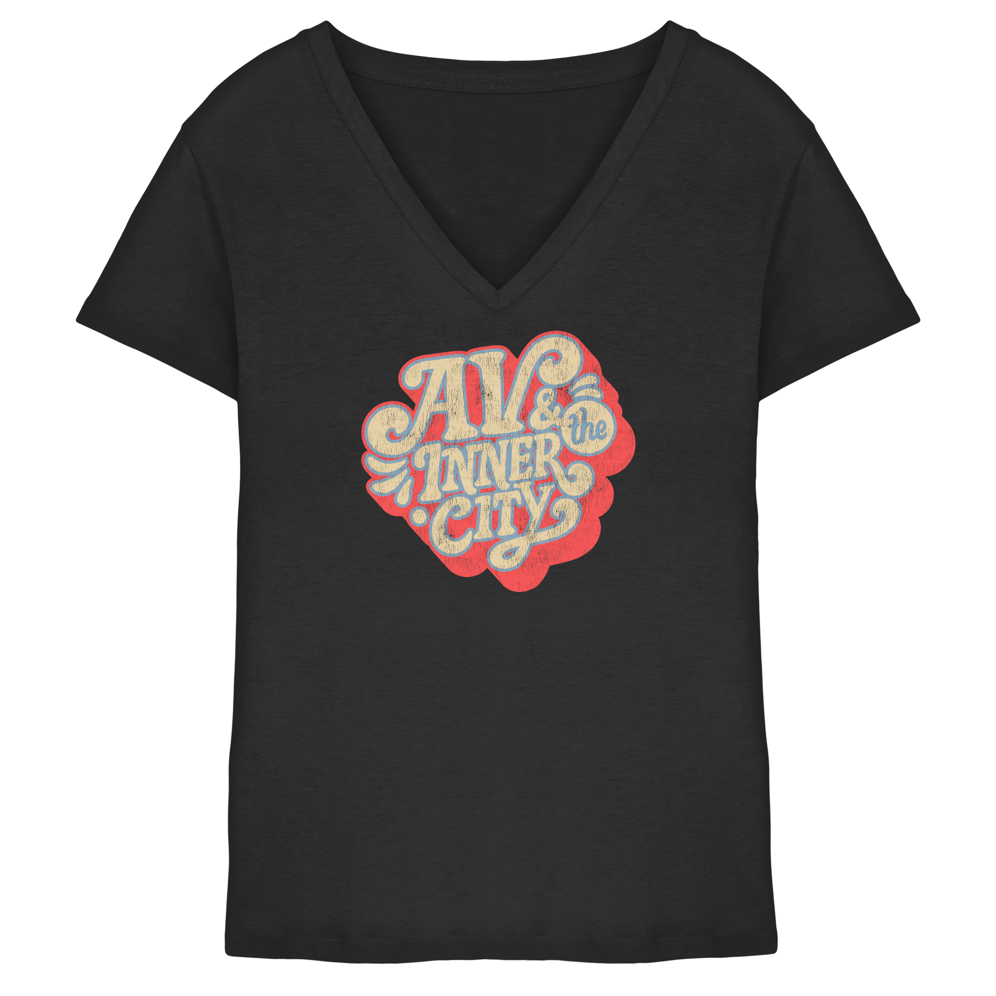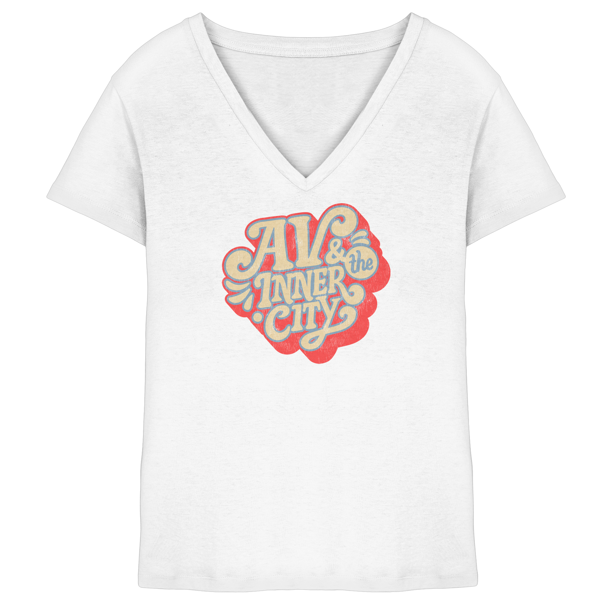 AV & the Inner City / Ladies V-Neck Shirt / Print Red - Ladies V-Neck Shirt